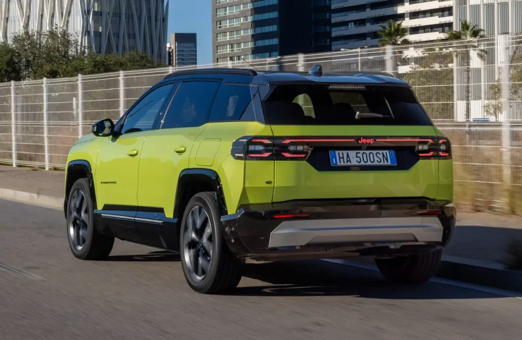 Based on the same Stellantis group underpinnings as the likes of the Vauxhall Grandland, Peugeot 3008, and Citroen C5 Aircross, the new Compass is launching with a choice of two powertrain options – a 145hp petrol mild hybrid, and a 213hp full EV. The latter comes with a 74kWh battery, which in future will be joined by a 97kWh version, offering a longer range. In addition, there will also be a plug-in hybrid, and a 375hp all-wheel drive EV, created via the fitment of a rear motor, that will also come with chassis changes designed to improve the model’s off-road driving ability. All that excitement is to come, but for now we’re trying the First Edition launch-spec version of the Compass, as a 213hp, 74kWh EV (First Edition is the only grade available initially; a fuller range will follow, including a distinct line-up for all-wheel drive models).