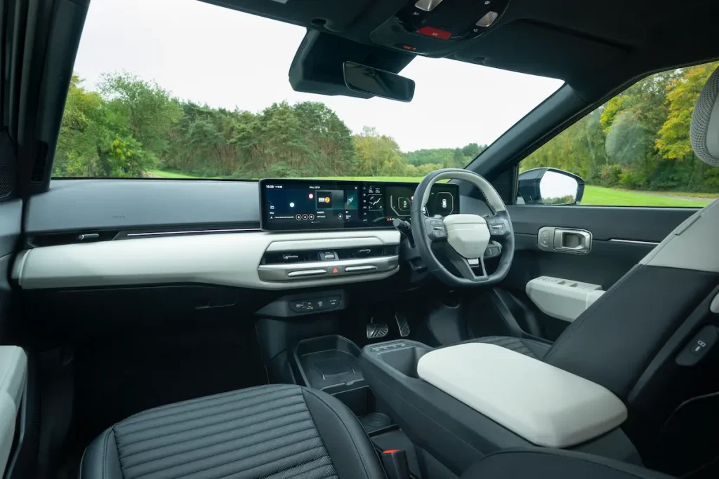The extra range is the result of the EV4’s slippery styling. It’s probably the most opinion-dividing example of Kia’s ‘Opposites United’ design philosophy – especially in Fastback form. Design highlights for both versions are the short front overhang, vertical headlights, flush door handles, and bold black arch trims. The hatchback is the best looking of the two, with its boxy arches, up to 19in alloy wheels all with square designs, and boomerang rear lights. The Fastback has a longer, deeper rear window, and elongated rear lights. It is an acquired taste, so it’s no wonder Kia UK is expecting an 80:20 split in favour of the hatchback, for both fleet and retail buyers.
