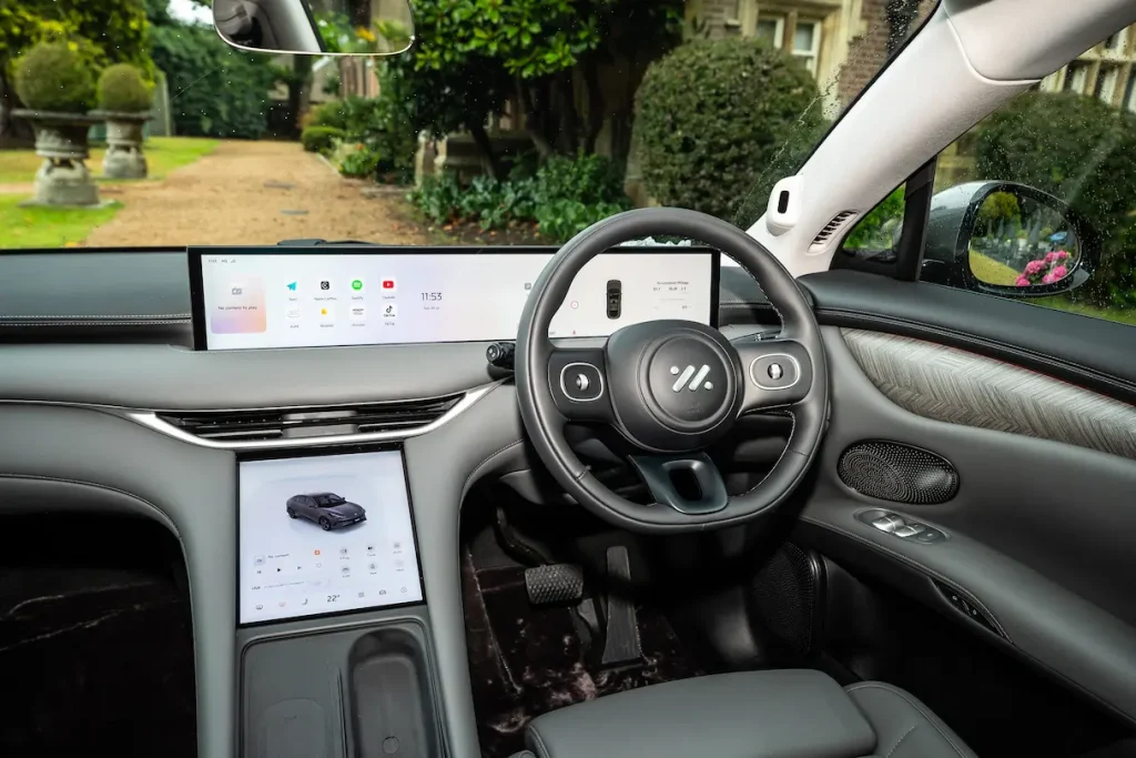 Standard equipment: 20-speaker audio system, 26.3in combined driver display and infotainment touchscreen, 10.5in lower touchscreen, double glazed thermal insulated panoramic roof, double layer soundproof glass, rear privacy glass, 256-colour ambient lighting, wireless charging pad, heated and ventilated front seats, heated steering wheel, four-wheel steering.