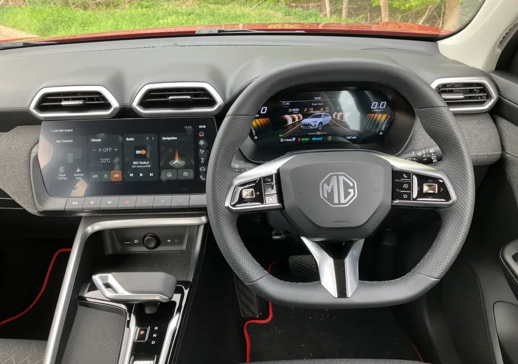 The high electric power level explains why MG has decided to fit a three-speed automatic gearbox – something which might sound like a throwback to the 1970s, but generally isn’t a problem, with refinement from the powertrain good most of the time. However, when going uphill, even under moderate acceleration, you can suddenly be confronted with loud engine noise. The first time this happened to us, we thought a motorbike had come up behind us, such was the suddenness and level of the din.