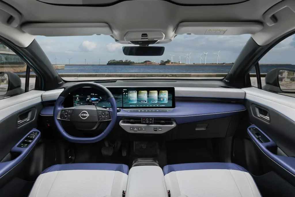 The biggest surprise is the driving position, lower than rivals such as the Skoda Elroq, an EV favourite of ours. The front seats are also comfortable, although in our opinion, could do with more side support. Nissan is particularly proud of the Leaf’s panoramic glass roof, which has no traditional sun blind. Instead, it can be darkened in segments at the touch of a button. It certainly gives welcome added light to the cabin, even on cloudy Autumn days.