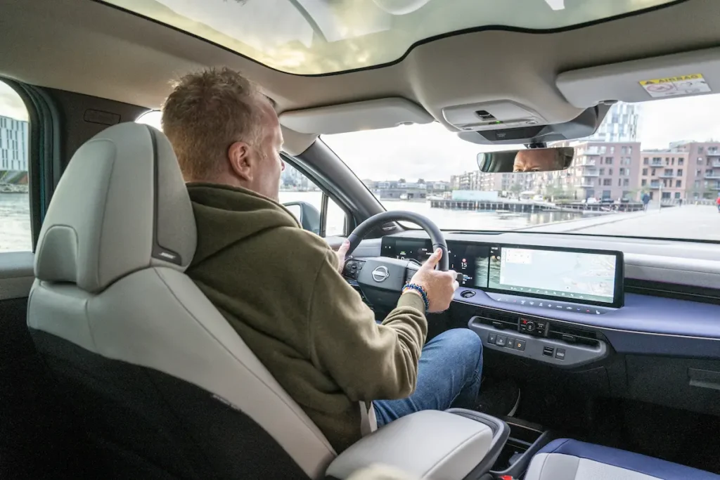 We spent our time in the 215hp version, and it’s the comfortable and composed ride that impresses first, which Nissan claims is the result of the new CMF-EV platform. Then there’s the precise steering, which although not particularly sporty, is much nicer than the Volkswagen ID.3’s. Although this is partly down to how nice the slim two-spoke multi-function steering wheel is to hold. Thanks to the Leaf’s soft suspension set-up, there is some body roll, but grip levels are high. Just like the ride and handling, the performance is smooth rather than dramatic, and it is efficient. We saw 4.1miles/kWh on the test route.