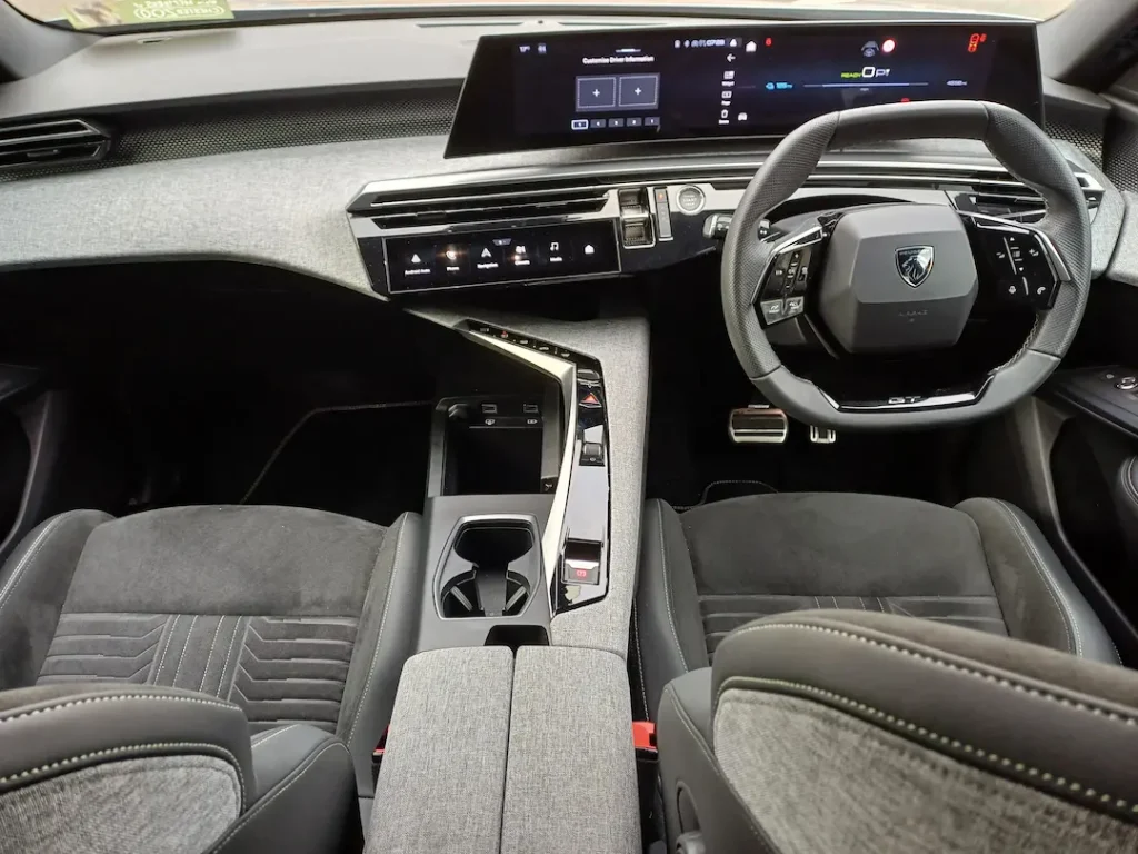 Standard equipment: Peugeot i-Cockpit 21in curved display, dual-zone climate control, wireless mirror screen (Apple Carplay and Android Auto), connected navigation, heated steering wheel, heated seats, adaptive cruise control, lane keeping assist, front and rear parking sensors, reversing camera, 20in Yosemite alloy wheels, LED exterior lighting.